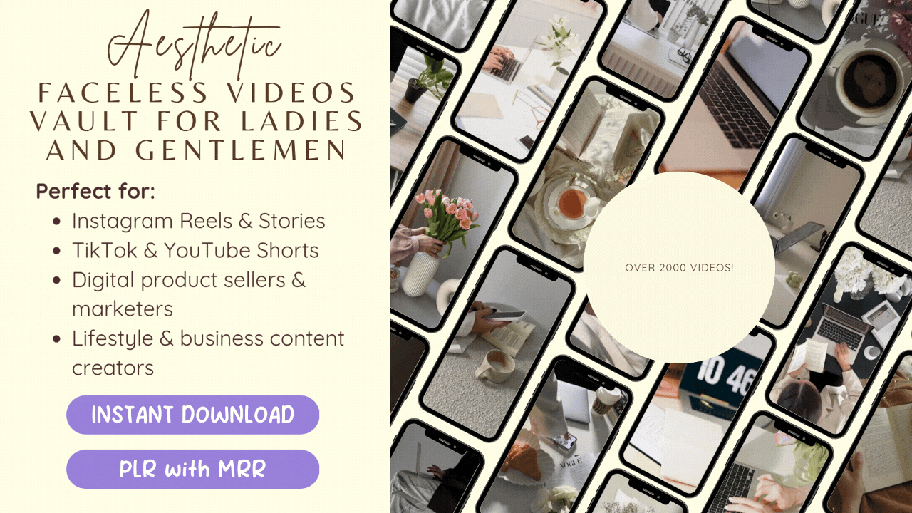 Aesthetic Faceless Videos Vault – 2300+ HD Videos for Ladies and Men (with MRR) | Digital Marketing Reels